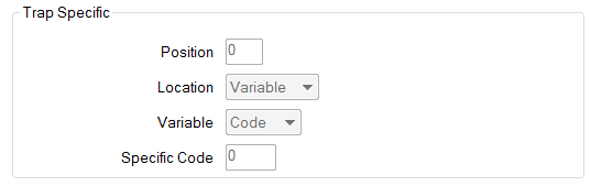 The fields within the Trap Specific section of the <Point Type> tab are only available for use when the point Action is set to Trap Specific (see Configure the Common Point Properties).
