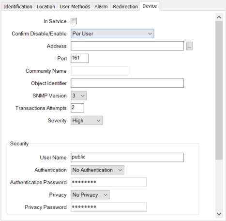 The SNMP driver allows you to create an SNMP Device that can be used to represent a physical device, such as a printer. It allows you to link together all SNMP points used with a device through a single database item. You need to create an SNMP Device prior to creating the SNMP points associated with it.