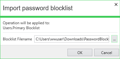 2. Select Import password blocklist to display the Import password blocklist dialog.