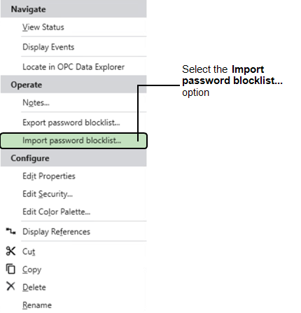 When you have created a Password Blocklist item you need to import the source blocklist text file that you created to make it available to Geo SCADA Expert.