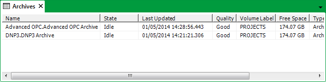 - Not Connected—If an archive has a Not Connected Quality state, it means that Geo SCADA Expert has detected a fault with the archive - either the Path or Node (or both) have not been configured.