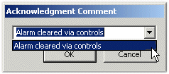 - In the Alarm Acknowledgment Comments section: