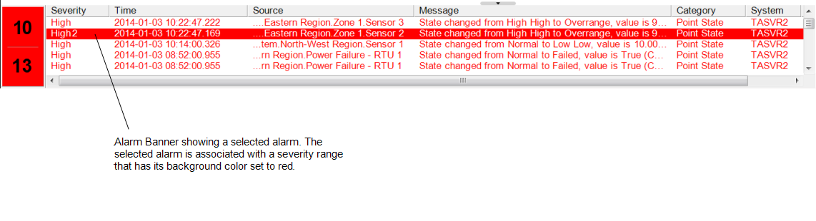 13. The Alarm Response Present color is only applied for the severity you are configuring and is only shown if the alarm is not currently selected and has already been acknowledged. For more information, see Precedence for the Severity Background Colors.
