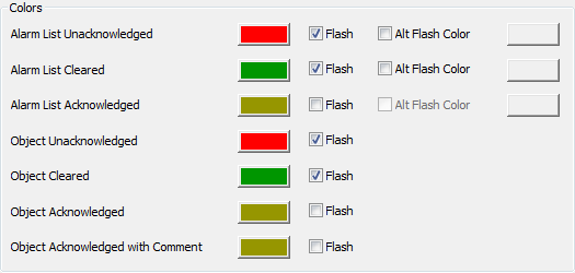 7. The Alt Flash Color feature is only available for the Alarm List Unacknowledged, Alarm List Cleared and Alarm List Acknowledged alarm states.