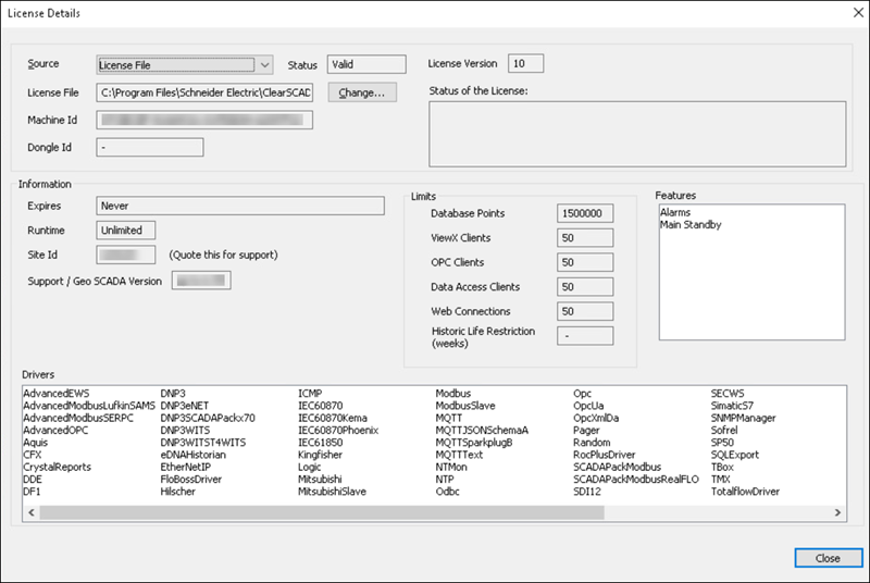 Display the License Details Window on a Geo SCADA Expert Server