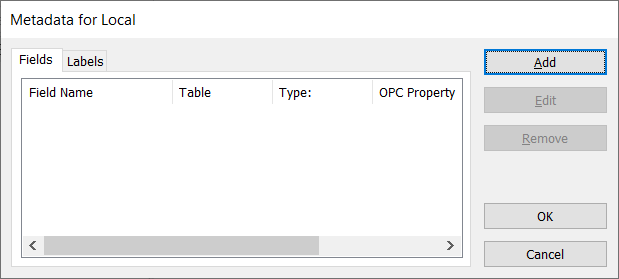 The Metadata window contains two tabs: Fields and Labels. The Fields tab allows you to add, edit and remove extra configuration fields, whereas the Labels tab allows you to add, edit and remove text that appears on a Form (the text is referred to as a label).