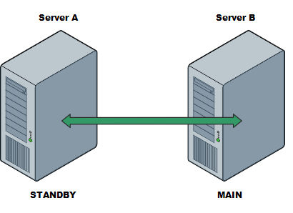 The network consists of a Hot-Standby Pair. Server A is the Main server and Server B is a Standby server.