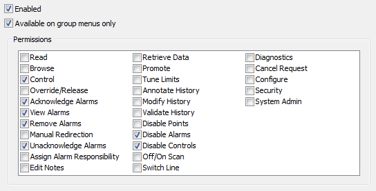6. For information on the various permissions, see Permissions for Database Items in the Geo SCADA Expert Guide to Security.