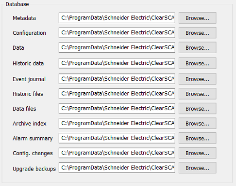 1. Select the Browse button next to the field for the database component that you want to relocate. For example, if you want to change the location of the Historic data, select the browse button next to the Historic data field.