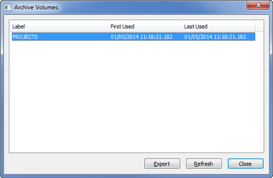 The Archive Volumes Manager has an Export button. You can select the Export button to output the information currently on display to a comma separated value format file (see Exporting Information from the Archive Volumes Manager).