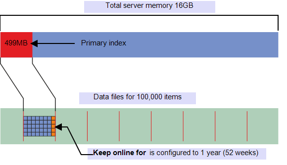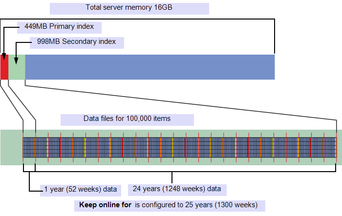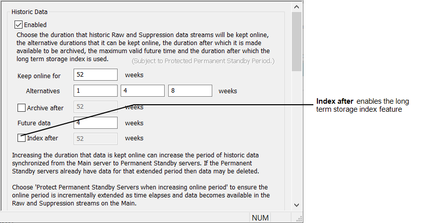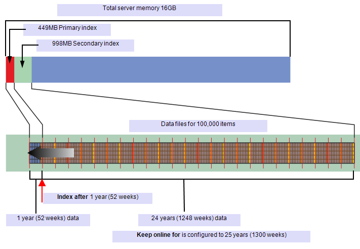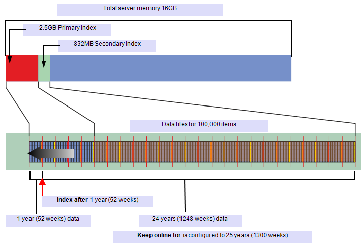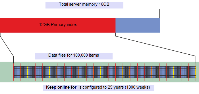 In this example the Keep Online for is set to 25 years (1300 weeks) and the Index after is set to 1 year (52 weeks).