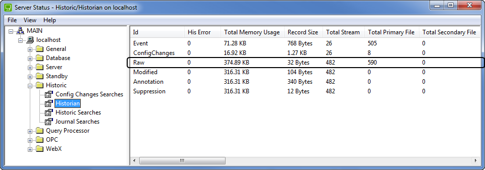 When a Geo SCADA Expert server is started it creates and maintains a Primary index of the historic data granules in that server (a granule is a file that holds the historic data for one item for a period of one week, see Historic Types and Streams). The Primary index allows your system to retrieve historic data quickly. The Primary index is created and kept in memory and is rebuilt each time that the server is restarted.