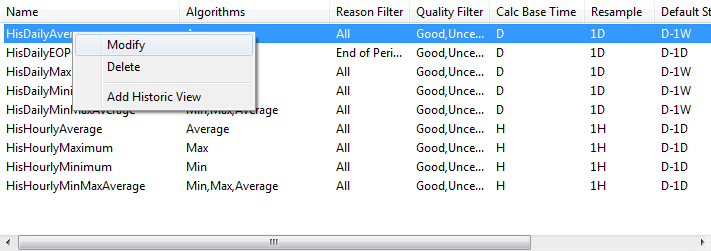 - Right-click on the Historic View that you want to edit from the list of historic views.