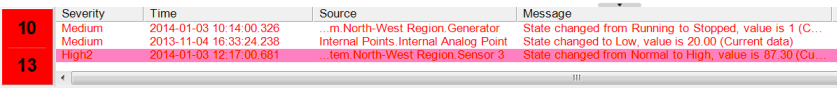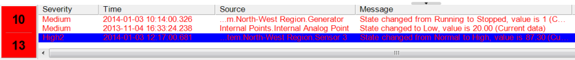 So, if an alarm in the severity range is currently selected, the background color of the alarm will match that defined in the Alarm Selected setting (even if the alarm has not been acknowledged and/or has a response message).