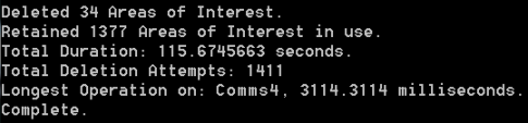 Regardless of the options that you specify at the command prompt, the Area of Interest Cleaner utility outputs a summary of its activity on completion: