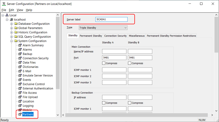 The Server label is used within the system architecture to uniquely identify the server. When connecting to a partner, the servers exchange label information. Likewise, clients obtain label information when they poll the server. On a new server, the Server Label defaults to the NetBIOS name of the machine on which the server is installed, however you can replace this name with a more meaningful label if required. Server Labels are restricted to 30 characters as they comprise the names of OPC properties.