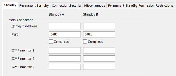 Use the Standby tab to configure the settings for the connection between the server on which you are working and the other Main and Hot Standby servers in the architecture.