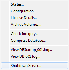 2. Select the Shutdown Server option.