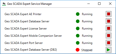 You may need to stop the Geo SCADA Expert server when you alter certain server configuration settings or when making a backup of your database. You are usually prompted on screen whenever you need to stop the Geo SCADA Expert server.