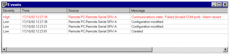 Geo SCADA Expert can detect remote serial communications failures on dynamically assigned ports. Any such failures are shown in the Events List which you can access from a ViewX or Virtual ViewX client.