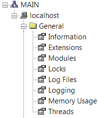 If you select the General group folder, the Information category status information is shown in the Server Status Display. This is because when a group folder is selected in the Server Status Tool, the Server Status Display shows the status information for the first sub-category in the selected group.