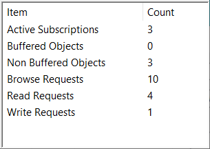 - Browse Requests—Indicates the number of browse requests received through the iBrowse interface (see OPC UA Server & PCS Service Settings).