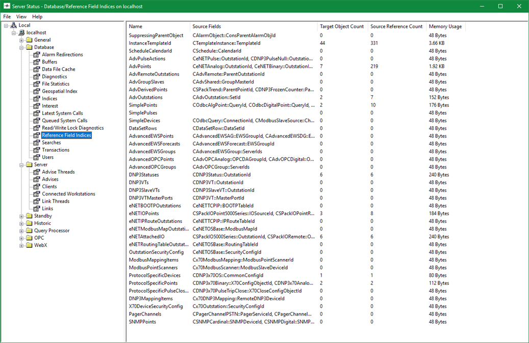 Many reference fields in the Geo SCADA Expert database are indexed. The indices are used internally to provide a record of the references between database items (such as the references between Group Instances and their Group Templates). Indices also allow for faster queries of indexed fields, as the query can be performed on an index rather than the entire database.