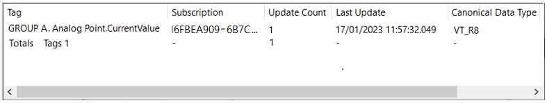 When the XML-DA Items category is populated with entries, a Totals row is added to the bottom of the list of entries.
