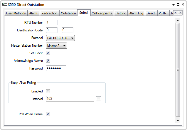 Sofrel outstations do not maintain permanent online communications and therefore this option only applies when using Open Line (PSTN) or Open Connection (Network) actions to hold the connection to the outstation open.