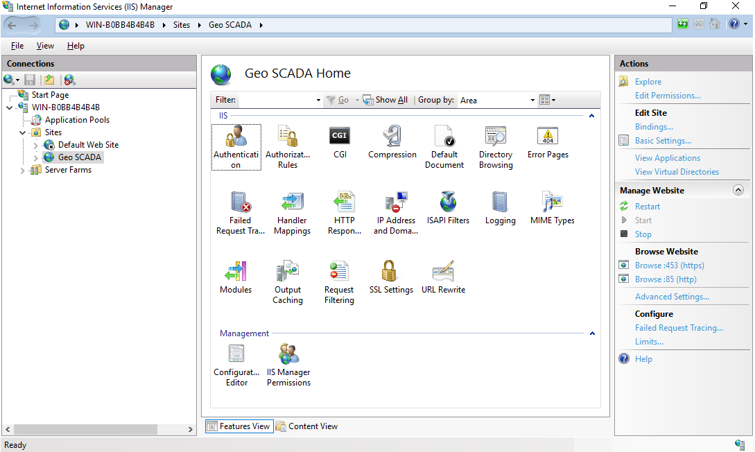IIS Manager is a tool produced by Microsoft® to manage Internet Information Services. If you need to modify your Virtual ViewX server installation, for example, to change the HTTP or SSL ports that were specified during the installation process, or to install an SSL certificate for use by the Virtual ViewX server, use the IIS Manager to do so. You can also use the IIS Manager to access information about the connection status of Virtual ViewX.