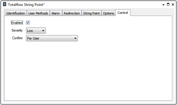 If the Enabled check box is selected, you will get access to the control aggregate and you can call the Control method on the point to change a parameter’s value in the Totalflow. This is providing that the App/Array/Register for the point refers to a writable string value.