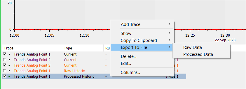- Right-click on the relevant trace in the Trend key.
