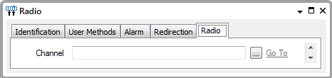 Use the Channel field on the Radio tab to specify the Simple Trio Diagnostics Channel that is used for communications with this radio (either directly, via a ‘base’ radio, or through a Terminal Server or similar device).