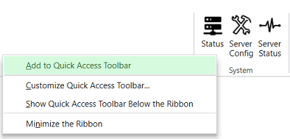 - Right-click on the title of the command group and select Add to Quick Access Toolbar.