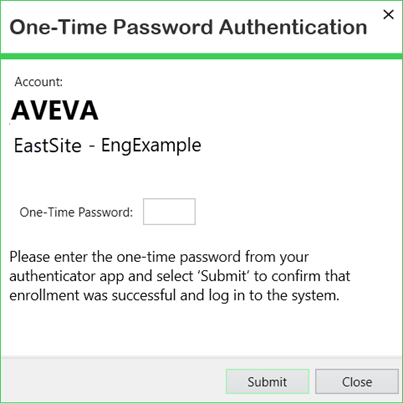 If your User Account provides access to other Geo SCADA Expert systems (databases) that are also using two-factor authentication, you have to enroll separately for each of those systems. To do so, repeat the above procedure by logging on to each of those systems in turn. You will acquire, and need, a separate authenticator account for each database. Ensure that you are aware as to which authenticator account you need to use to log on to each system (database). The authenticator account details are shown on the One-Time Password Authentication window that gets displayed whenever you log on to Geo SCADA Expert. Use this information to identify the authenticator account that you need to use for that particular system.