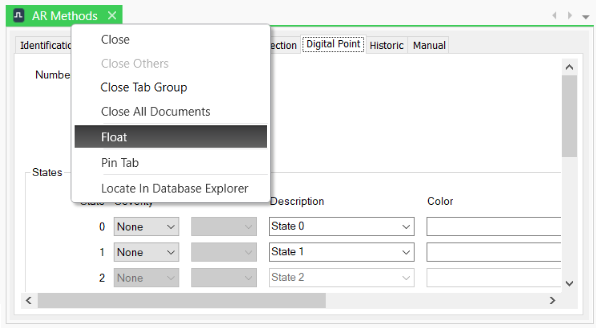 - Right click on the document window's tab and select the Float option from the context-sensitive menu that appears. The window is detached from the main display area.