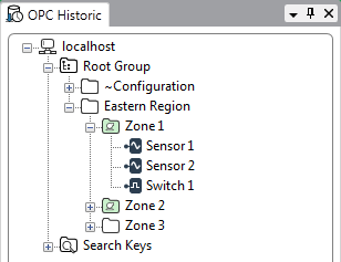 The OPC Historic Data Bar is an Explorer Bar (see Explorer Bars). It provides access to the OPC historic data in the database and uses a hierarchical ‘tree’ structure (see Working with Explorer Bars).