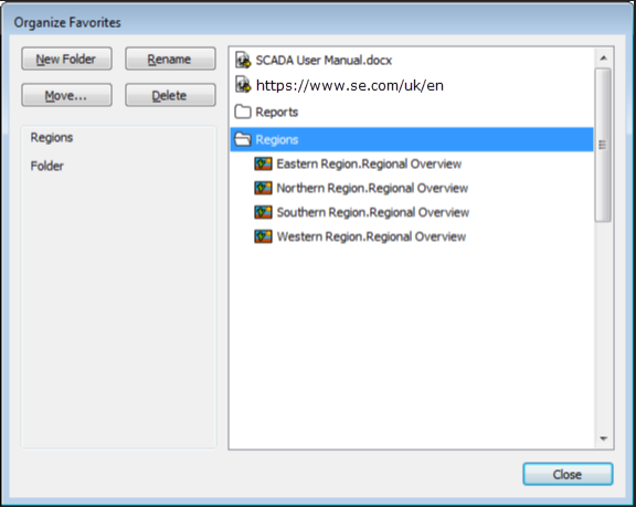 4. Once you have finished organizing the entries in your Favorites List, select the Close button on the Organize Favorites window.
