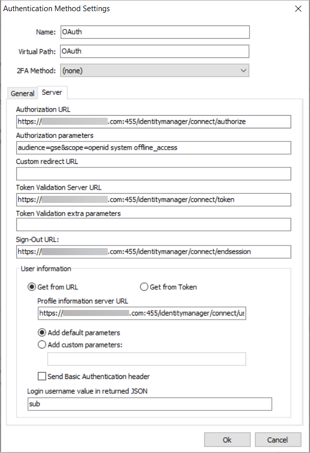 - In the User Information section, select the Get from URL option, and then specify the following:
