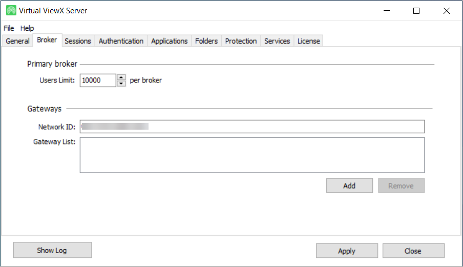 This tab is only included when the application is installed on a server class computer. The Primary broker section enables you to define the maximum number of users that can be allowed per broker.
