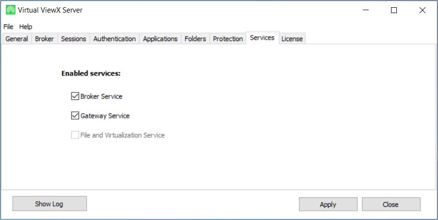 The Virtual ViewX Manager is an application that is installed on each Virtual ViewX server machine. The application provides information about the server's communication settings, Virtual ViewX license, file locations, and so on.