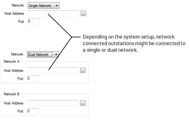 For an outstation that is in a Switched or Shared set, and is therefore connected to two networks. If you choose this option, two sets of Host Address and Port fields become available for configuration, one for Network A and one for Network B.
