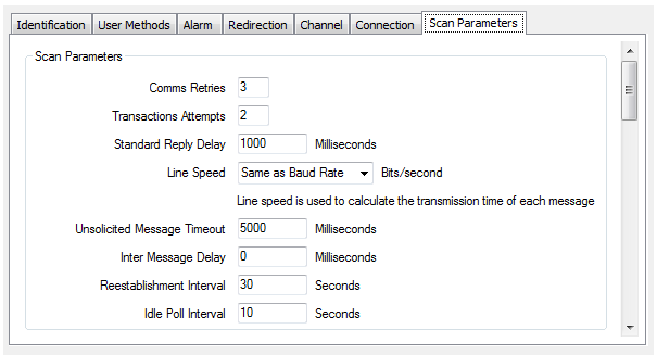 To configure these properties for a channel, select the ScanParameters tab on the relevant Channel Form.