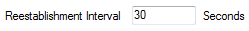 The Reestablishment Interval field is displayed at the bottom of the Scan Parameters section on the Channel Form. Use the field to define how often the Geo SCADA Expert server attempts to establish communications with an outstation that is deemed to have failed. For further information, and an example of how the Reestablishment Interval is used, see Establishment Phase.