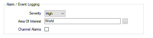 If the Area of Interest feature is enabled on your system, an additional Area of Interest field is displayed within the Alarm/Event Logging section on the Outstation tab. Use the field to specify the area with which any of the outstation’s alarms or events are to be associated (see Assign a Different Area of Interest to an Item’s Alarms and Events).