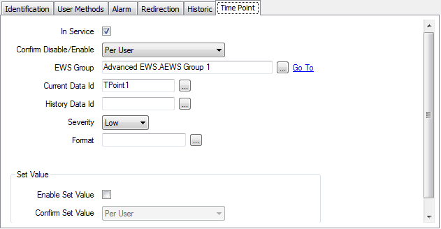 - Select the Enable Set Value check box, (Ensure that the check box is clear if the string is an input point).