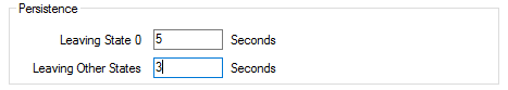 Use the fields within the Persistence section of the Digital Point tab to stop fleeting changes in value from causing a change in point state. With the Persistence feature, a change in value will only cause a change in point state if that point remains in the new state for a specified time.