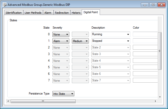 For information on Persistence Type, see Use Persistence to Stop Fleeting Changes in Value from Changing a Point State.