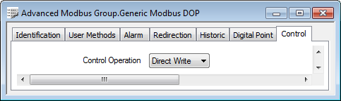 Use the Control Operation combo box on the Control tab to specify the type of control operation that Geo SCADA Expert is to undertake when addressing Holding Registers.