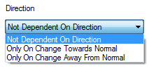 Use the Direction field to specify whether an alarm is to be redirected only if the point changes state and its value is deemed to be traveling in a particular direction.